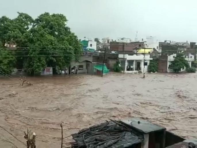 संग्रामपूर (बुलढाणा) : शुक्रवारी रात्रीपासून सुरू असलेल्या पावसाने संग्रामपूर तालुक्यात हाहाकार माजविला आहे. ढगफुटी सदृश्य पाऊस पडत असल्याने नदी नाल्यांना प्रचंड पूर आला. तालुक्यातील असंख्य गावातील नदीकाठच्या घरात पाणी शिरल्याने नागरिकांनी सूरक्षित आश्रय घेतला. रस्ते जलमय झाले. पावसामूळे विजपूरवठा खंडीत झाला आहे.