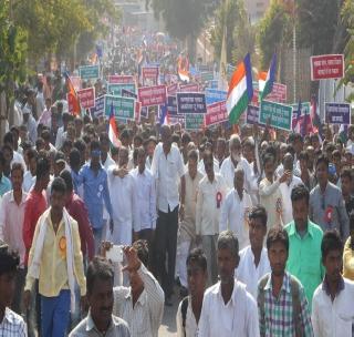 खामगाव: मतदारांना खोटी आश्वासने देऊन केंद्रात व राज्यात भाजपा प्रणीत शासनाने सत्ता काबीज केली. निवडणूकपूर्व दिलेले एकही आश्वासन पूर्ण करण्यास शासन अपयशी ठरले आहे. नैसर्गिक आपत्तीने शेतकरी, शेतमजूर, सामान्य नागरिकांचे जगणे कठीण होत आहे. अशा परिस्थितीत शासनाने जिल्हा दुष्काळग्रस्त घोषित केला आहे. दुष्काळाच्या निकषामध्ये शेतसारा माफ करण्यात येणार असल्याने शेतकर्यांचे भले होणार नाही तर शेतकर्यांना हेक्टरी ५0 हजार रुपये मदत करून शेतकर्यांचा सातबारा कोरा करा अन्यथा शासनाविरुद्ध आंदोलने सुरूच राहतील, असा इशारा भारिप-बहुजन महासंघाचे जिल्हाध्यक्ष अशोक सोनोने यांनी दिला. बुलडाणा जिल्हा दुष्काळग्रस्त जाहीर करून शेतकर्यांचा सातबारा कोरा करावा, शेतकर्यांसाठी डॉ. स्वामीनाथन आयोग लागू करा, आरक्षणाविषयी चालू असलेल्या चर्चांंना पूर्णविराम देऊन आरक्षण कायम ठेवण्यात यावे, खासगी क्षेत्रात आरक्षण लागू करण्यात यावे, वाढलेली महागाई कमी करण्यात यावी, चारा डेपो सुरू करावे, खामगाव जिल्हा व लाखनवाडा तालुका जाहीर करावा या व इतर मागण्यांसाठी गुरुवारी भारिप-बहुजन महासंघाच्या वतीने उपविभागीय अधिकारी कार्यालयावर प्रचंड मोर्चा काढण्यात आला.