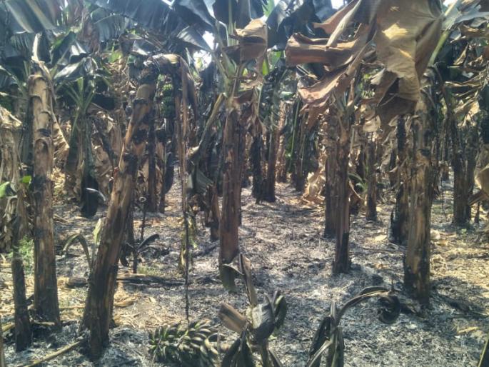 ते तयार झाले असताना सोमवारी हसन कैलास चव्हाण, रामा महादेव चव्हाण यांनी सकाळी ते पेटवून दिले. याबाबतची माहिती फिर्यादीच्या वडिलांनी त्यांना दिली. त्यावरून त्यांनी शेतात जाऊन पाहिले असता केळी पीक व इतर सिंचन साहित्य जळून खाक झाल्याचे दिसून आले. त्यावरून त्यांनी खामगाव ग्रामीण पोलिसांत तक्रार दिली. त्यामध्ये केळी पीक सहा लाख रुपये व सिंचनाचे साहित्य मिळून ७ लाख २० रुपयांचे नुकसान झाल्याचे म्हटले आहे. पोलिसांनी दोन्ही आरोपींविरूद्ध भादंविच्या कलम ४३५(३४) नुसार गुन्हा दाखल केला आहे. पुढील तपास पोलिस करीत आहेत.