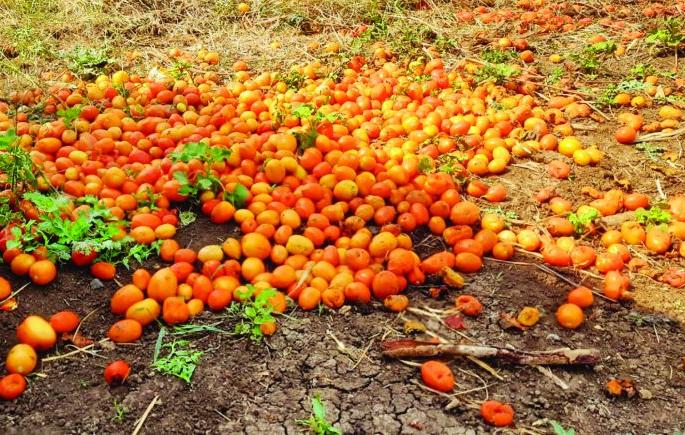 एका एकराला ४० हजार रुपये खर्च टोमॅटोचे एका एकरातील सुरुवातीपासून शेवटपर्यंत पूर्ण पीक निघण्याकरिता कमीत कमी एकरी चाळीस हजार रुपये खर्च येतो. अशा बिकट परिस्थितीमुळे शेतकऱ्यांनी शेतातील टोमॅटो गुरांना रस्त्यावर टाकून चारणे चालू केले आहे. अनेक शेतकऱ्यांनी लाखो रुपयांचे नुकसान झाले आहे.