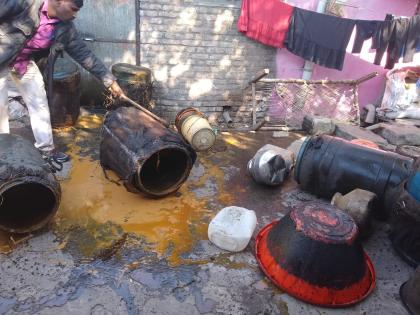बुलडाण्यात नालीतून वाहला चार हजार लिटर हातभट्टी दारूचा सडवा