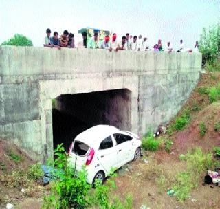 मेहकर (जि. बुलडाणा) : मेहकर येथून सुलतानपूरकडे जाणार्या इंडिका गाडीचा टायर फुटल्याने मेहकर बायपासवरील पुलावरून गाडी खाली कोसळली. यात इंडिकातील चार जण जखमी झाल्याची घटना ११ मे रोजी सांयकाळी ५.३0 वाजेच्या सुमारास घडली. यवतमाळ जिल्ह्यातील दारव्हा तालुक्यातील धामणगाव देव येथील रहिवासी काशिनाथ राठोड (४५), उज्ज्वला राठोड (४0), अनिकेत राठोड (३६) आणि मनीषा राठोड हे सर्व एम.एच २0 पी.एच ६४३३ क्रमांकाच्या इंडिका गाडीने मेहकर येथून सुलतानपूरकडे जात होते; मात्र या दरम्यान अचानक रस्त्यावर त्यांच्या गाडीचा टायर फुटला. यामुळे चालकाचा गाडीवरील संतुलन बिघडून गाडी मेहकर बायपासवरील पुलावरून खाली कोसळली. यामध्ये गाडीतील चारही जण गंभीर जखमी झाले. परिसरतील नागरिकांनी सर्व जखमींना रुग्णालयात दाखल केले. जखमी राठोड कुटुंबीयांवर खासगी रुग्णालयात उपचार सुरू आहे.