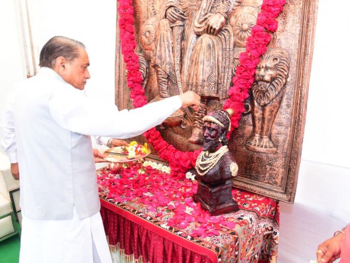 खामगाव : पश्चिम विदर्भातील सर्वात मोठा कृषी महोत्सव शहरात सुरु आहे. या कृषी महोत्सवात शेतकºयांना आधुनिक तंत्रज्ञान व शेतीविषयक मार्गदर्शनासोबतच विविध सांस्कृतीक कार्यक्रम पार पडत आहेत. शिवजयंतीनिमित्त १९ फेब्रुवारीरोजी दुपारी १२ वाजता कृषी महोत्सवस्थळी कृषी व फलोत्पादनमंत्री ना. भाऊसाहेब फुंडकर यांनी हजेरी लावली. १६ फेब्रुवारी पासून जलंब रोडवरील पॉलीटेक्नीक ग्राऊंडवर भव्य कृषी महोत्सव सुरु आहे. सोमवारी दुपारी १२ वाजता हिंदवी स्वराज्याचे निमार्ते छत्रपती श्रीमंत शिवाजी महाराजांची जयंती उत्साहात साजरी करण्यात आली. यावेळी महाराष्ट्र राज्याचे कृषी व फलोत्पादन मंत्री तथा बुलडाणा जिल्ह्याचे पालकमंत्री ना. भाऊसाहेब फुंडकर यांनी व खामगाव मतदार संघाचे आमदार अॅड. आकाश फुंडकर यांनी छत्रपती शिवाजी महाराजांना माल्यार्पण करून अभिवादन केले. यावेळी जिल्हा अधिक्षक कृषी अधिकारी प्रमोद लहाळे, प्रकल्प संचालक आत्मा नरेंद्र नाईक, तहसीलदार सुनिल पाटील, जिल्हा मृद चाचणी अधिकारी जे.एस.गायकवाड, भाजपाचे शहराध्यक्ष संजय शिनगारे, तालुका कृषी अधिकारी संजय ढाकणे, मंडळ कृषी अधिकारी अविनाश सूर्यवंशी, वरदा रांजणे, सोनाली सोनवणे, दीपक दहिफळे, ओंकार अय्यम, अनंता अंभोरे, कृषी सहाय्यक अमोल धामणकर, कल्पना गिरी, निवृत्ती नागे यांचे सह कृषी विभागातील कर्मचारी व शेतकरी बांधव मोठ्या संख्यने उपस्थित होते. यावेळी छत्रपती शिवाजी महाराज की जय, जय जय भवानी जय शिवाजी या घोषणांनी परिसर दणदणुन गेला होता.