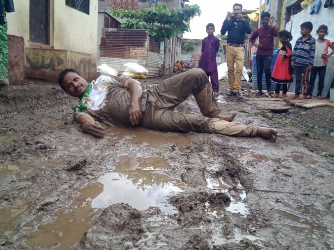 लोकमत न्यूज नेटवर्कखामगाव: स्थानिक बर्डेप्लॉट भागातील बिलाल मशीदीजवळील रस्त्याची अतिशय दयनिय अवस्था झाली आहे. याबाबत नगर पालिका प्रशासनाकडे वारंवार तक्रार केल्यानंतरही काहीच उपयोग न झाल्याने गुरूवारी चक्क चिखलाने माखलेल्या रस्त्यावर लोटांगण आंदोलन करीत प्रशासनाचे लक्ष वेधण्यात आले.खामगाव शहरातील बर्डेप्लॉट भागातील बिलाल मशीदीला जोडणाºया रस्त्यावर आणि गल्लीम मोठ्या प्रमाणात चिखल साचला आहे. त्यामुळे परिसरातील रहिवासी आणि मशीदीत नमाजसाठी जाणाºया मुस्लिम बांधवांना त्रास सहन करावा लागतो. नगर पालिका प्रशासनाकडे वारंवार तक्रार केल्यानंतरही रस्त्याच्या अवस्थेत बदल झाला नाही. त्याचवेळी निवेदन देऊनही साधा मुरूमही या रस्त्यावर टाकण्यात आला नाही. याबाबीचा निषेध म्हणून एआयएमआयएमचे शहराध्यक्ष मो. आरीफ अ. लतिफ यांनी गुरूवारी चक्क चिखलाने माखलेल्या रस्त्यावरून लोटांगण घेतले. मो. आरीफ यांच्या लोटांगण आंदोलनामुळे बर्डे प्लॉट भागात एकच खळबळ उडाली होती. लोटांगण आंदोलनादरम्यान, पालिकेचा कोणताही अधिकारी परिसरात न फिरकल्याचाही यावेळी निषेध नोंदविण्यात आला. त्यानंतर बिलाल मशीदीकडे जाणारा रस्त्याचे सिमेंटीकरण करण्यासाठी निवेदन देण्यात आले.