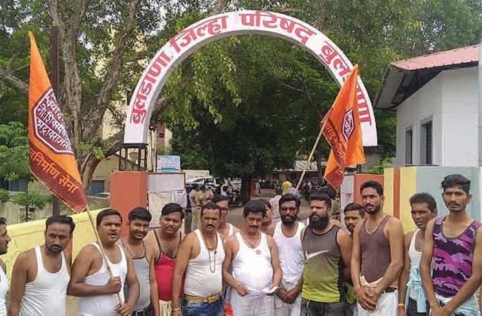 बुलडाणा : रस्त्यांच्या दुरुस्तीसाठी मनसेचे जि. प. समोर अर्धनग्न आंदोलन