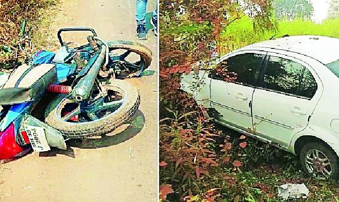 लोकमत न्यूज नेटवर्कआरमोरी : आरमोरीकडे येणाऱ्या दुचाकीस्वाराला विरूध्द दिशेने जाणाºया भरधाव चारचाकी वाहनाने धडक दिली. या अपघातात एक जण ठार तर दोघे जखमी झाल्याची घटना आरमोरी जवळील साईराम पेट्रोलपंपाजवळ मंगळवारी दुपारी १२ वाजताच्या सुमारास घडली.सदाशिव उईके (४५) असे मृत इसमाचे नाव आहे, तर देवाजी कुमरे व प्रकाश कुमरे (३०) हे जखमी झाले आहेत. हे तिघेही डोंगरगाव येथील रहिवासी आहेत. तालुक्यातील डोंगरगाव येथील प्रकाश कुमरे यांच्यासाठी मुलगी बघण्यासाठी आरमोरी येथे एकाच दुचाकीने हे तिघे जण येत होते. दरम्यान गडचिरोली मार्गावरील पेट्रोलपंपासमोर गडचिरोलीकडे जाणाºया एमएच ०४ ईएक्स २९७१ क्रमांकाच्या कारने दुचाकीला समोरून जोरदार धडक दिली. दुसऱ्या दुचाकीस्वाराला वाचविण्याच्या प्रयत्नात सदर अपघात झाला.या अपघातात सदाशिव उईके हे रूग्णालयात नेताना मरण पावले. देवाजी कुमरे व प्रकाश कुमरे हे गंभीर जखमी झाले आहेत. पेट्रोल पंपाच्या अगदी समोर अपघात घडला. या पेट्रोल पंपावर सीसीटीव्ही कॅमेरे लावण्यात आले आहेत. सीसीटीव्ही फुटेज बघून अपघात नेमका कसा घडला, याची माहिती पोलीस घेत आहेत.अधिक तपास ठाणेदार दिगांबर सूर्यवंशी यांच्या मार्गदर्शनात सहायक पोलीस निरिक्षक धोंडसे करीत आहेत.