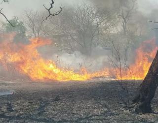 बुलडाण्यात वनविभागाच्या लाकूड आगार परिसरात आग; सागवानची झाडे होरपळली