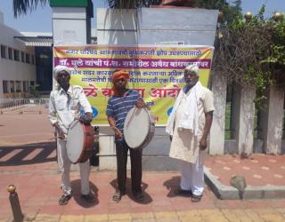खामगाव पालिकेसमोर अवैध बांधकामाविरोधात डफडे बजाव आंदोलन