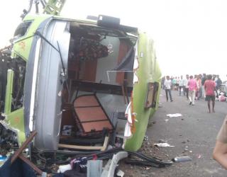 बुलढाणा : डोणगावनजीक समृद्धीवर खासगी प्रवाशी बस उलटली; दोघे जखमी, ५४ प्रवाशी सुखरूप