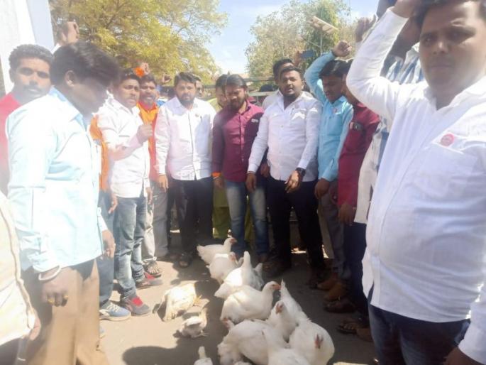 पोल्ट्री उद्योग संकटात; जिल्हाधिकारी कार्यालयाच्या प्रवेशद्वारासमोर सोडल्या कोंबड्या