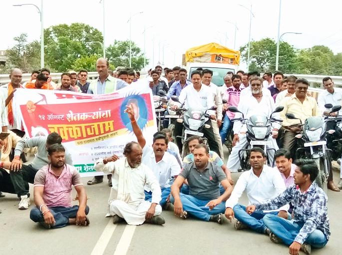 मलकापूर: शेतकर्यांना सरसकट कर्जमाफी मिळालीच पाहिजे या प्रमुख मागणीसह शेतकरी हिताच्या विविध मागण्यांस्तव प्रहार जनशक्ती पक्ष व शेतकरी सुकाणू समितीच्या वतीने १४ ऑगस्ट रोजी दुपारी १२ वाजेच्या सुमारास तहसील चौकात मलकापूर विधानसभा प्रमुख संभाजी शिर्के यांच्या नेतृत्वात रास्ता रोको आंदोलन करण्यात आले. दरम्यान, पोलिसांनी आंदोलनकर्त्यांना स्थानबद्ध करून नंतर सोडून दिले.