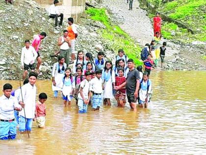 बुलडाणा : मोताळा तालुक्यातील रिधोरा जहाँगीर येथे बस उपलब्ध नसल्याने विद्यार्थ्यांना पावसाळ्यात १० किमी फेऱ्याने किंवा नदीपात्रातून जीव मुठीत घेवून शाळेत जावे लागते.