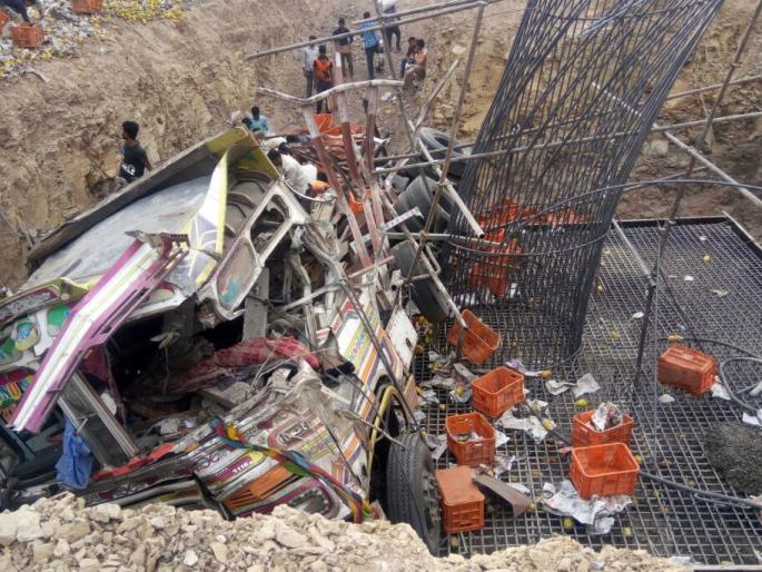 खामगाव: आंबे वाहून नेणारा भरधाव ट्रक निर्माणाधीन पुलानजीक कोसळून झालेल्या अपघातात एक जण ठार तर दोन जण जखमी झाले. ही घटना गुरूवारी पहाटे ४ वाजता दरम्यान घडली. या अपघातील जखमींना अकोला येथे हलविण्यात आल्याची माहिती आहे.