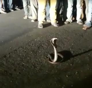 ही घटना सोमवारी सायंकाळी ७ वाजताच्या दरम्यान घडली. उपराज्य महामार्ग असल्याने रस्त्यावरील वाहतूक एक तास ठप्प झाली होती. कोब्रा नाग रस्त्यावरच असल्याने बघ्यांची अलोट गर्दी झाली होती. त्यामुळे परिसरात नाग पाहण्यासाठी कुतूहलाचा विषय बनला होता. जवळपास 1 तास हा नाग रस्ता अडवून उभा होता. आजूबाजूला जमलेल्या जमावामुळे तो नाग काहीसा बिथरला होता. मात्र काही काळानंतर तो जंगलात निघून गेला.