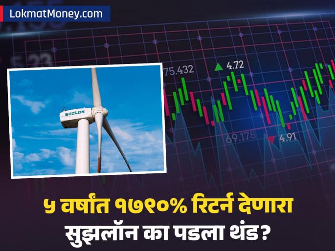 उच्चांकावरून ३०% खालीसध्या सुझलॉन एनर्जीचा शेअर त्याच्या विक्रमी उच्चांकावरून ३०% खाली आहे. एनएसईवर त्याचे बाजार भांडवल ८०,००० कोटींपेक्षा कमी झाले आहे. ट्रेंडलाइनच्या आकडेवारीनुसार, गेल्या एका वर्षात या शेअरमध्ये ७% ची घसरण झाली आहे, जी निफ्टी (६% वाढ), बीएसई सेन्सेक्स (५% वाढ) आणि सेक्टर इंडेक्स (१०% वाढ) यांच्या तुलनेत कमजोर कामगिरी आहे.