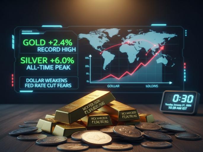 Gold Silver On MCX: मंगळवार, २७ जानेवारी रोजी सकाळी देशांतर्गत वायदा बाजारात सोन्याच्या किमतींनी नवा उच्चांक गाठला. भू-राजकीय जोखीम वाढल्यामुळे गुंतवणूकदार सुरक्षित मालमत्ता म्हणून सोन्याकडे वळत आहेत. अमेरिकन डॉलरचं कमकुवत होणं आणि अमेरिकन फेडरल रिझर्व्हकडून व्याजदरात कपात होण्याची शक्यता, या कारणांमुळे सोन्याच्या दरात मोठी तेजी पाहायला मिळत आहे.