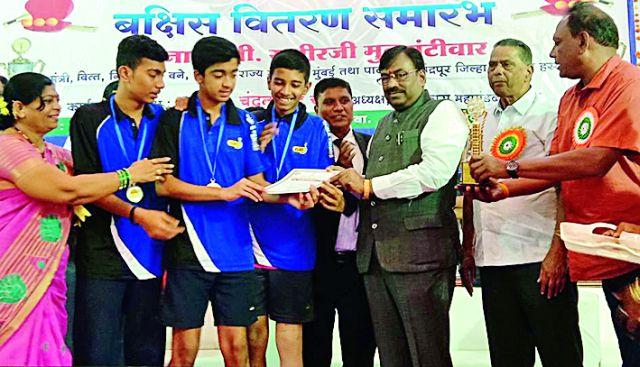 यावेळी आ. नाना श्यामकुळे, महापौर अंजली घोटेकर, डॉ. विजय इंगोले, महाराष्टÑ टेबल टेनिस असोसिशनचे सचिव प्रकाश तुरकुळे, अॅड. आशुतोष पोतनीस, प्रकाश जसानी, प्रा. वसंत आकुलवार, कुंदन नायडू, हर्षवधन सिंघवी, राजेश नायडू व अन्य मान्यवर उपस्थित होते. पालकमंत्री मुनगंटीवार म्हणाले, जिल्ह्यातील खेळाडंूना राष्टÑीय व आंतरराष्टÑीय पातळीवर संधी मिळावी, यासाठी उत्तम दर्जाचे प्रशिक्षण तसेच खेळाचे साहित्य देण्यासाठी रिलायन्स कंपनीचे प्रायोजकत्व मिळवून देणार आहे. बल्लारपूर येथे बांधण्यात आलेल्या तालुका क्रीडा संकुलाच्या उद्घाटनासाठी चित्रपट अभिनेते अमिर खान यांना निमंत्रीत करण्यात आले आहे. जिल्ह्यातील क्रीडा क्षेत्रासाठी पोषक वातावारण निर्माण झाले. मूल, बल्लारपूर, पोंभुर्णा येथेही दर्जेदार सुविधा निर्माण केले जात आहे. राज्य शासनाने क्रीडा क्षेत्राला चालना देण्याचे धोरण स्वीकारले. या धोरणानुसारच राज्यामध्ये क्रीडाक्षेत्रात पायाभूत कामे सुरुत आहेत असेही ना. मुनगंटीवार यांनी सांगितले. आ. श्यामकुळे यांनी स्थानिक विकास निधीतून निधी उपलब्ध करुन दिला. क्रीडा संकुलाच्या बांधकामासोबतच सोयीसुविधा निर्माण होणार आहेत. महापौर घोटेकर यांनीही एव्हरेस्ट सर करणाऱ्या आदिवासी विद्यार्थ्यांचा उल्लेख करुन जिल्ह्यामध्ये शैक्षणिक क्षेत्रामध्ये प्रगती होत असल्याचे नमुद केले. जिल्हा क्रीडा अधिकारी अनंत बोबडे यांनी प्रास्ताविक भाषणातून जिल्ह्यातील क्रीडा क्षेत्राची माहिती दिली. यावेळी पालकमंत्री सुधीर मुनगंटीवार यांच्या हस्ते विजेत्या खेळाडूंना पुरस्कार प्रदान करण्यात आला. तालुका क्रीडा अधिकारी अब्दुल मुश्ताक, संजिवनी पूर्णपात्रे, आर. बी. वडते, पंडित चव्हाण, सचिन मांडवकर, राजेंद्र आव्हाड, वाल्मिक खोब्रागडे, विजय बागडे, संजय भरडकर, टेनिस संघटनेचे पदाधिकारी व मनपाचे कर्मचारी उपस्थित होते.