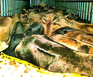 कत्तलखान्यात जाणाऱ्या ५५ जनावरांची सुटका