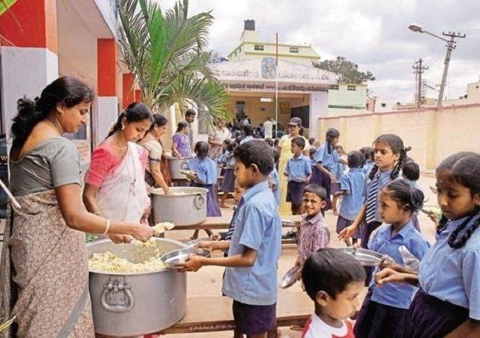 खिचडी शिजवून घेणे; मुलांना वाटप करणे