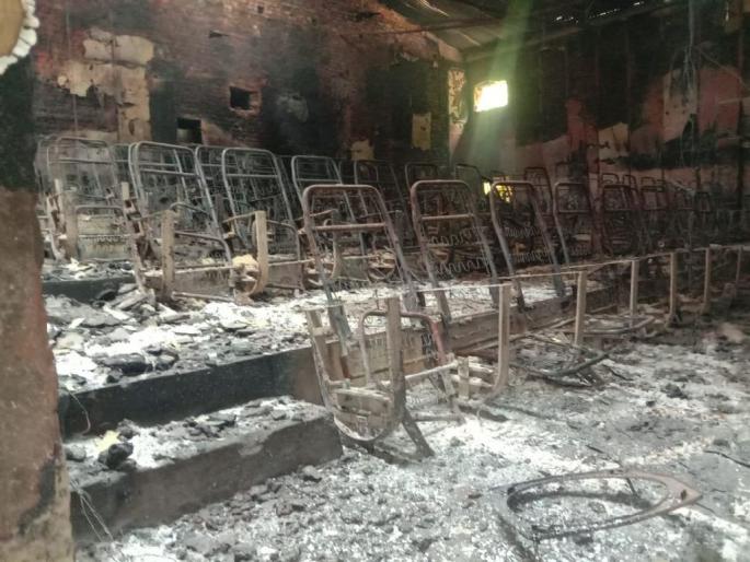चंद्रपूर : ब्रम्हपुरी तालुक्यातील एकमेव सिनेमागृह शहरातील आरमोरी मार्गावर आहे. गुरुवारी रात्रीच्या सुमारास आग लागून संपूर्ण सिनेमागृहातील साहित्य जळून खाक झाले. समोरील लोखंडी दार कुलूप लावून बंद करण्यात आले होते. आत जाण्यासाठी दुसरा मार्ग नाही.