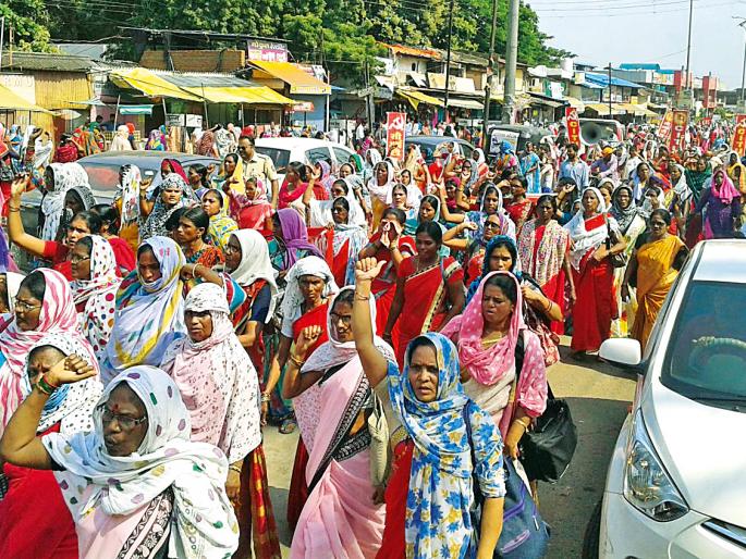 सीआयटीयू संलग्न अंगणवाडी कर्मचारी संघाच्या वतीने बल्लारपूर येथील नगरपालिका बचत भवन परिसरातून अंगणवाडी कार्यकर्त्यांचा धडक मोर्चा सोमवारी दुपारी २ वाजता काढण्यात आला.