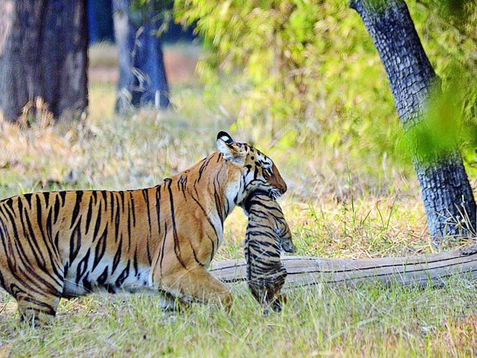 आॅनलाईन लोकमतचंद्रपूर :वन्यजीव प्रेमींसाठी एक आनंदाची बातमी आहे. ताडोबा-अंधारी व्याघ्र प्रकल्पातील माया नावाच्या वाघिणीने नुकताच बछड्यांना जन्म दिला आहे. शुक्रवारी येनबोडी परिसरात ती एका बछड्याला तोंडात पकडून रस्ता ओलांडताना दिसून आली. दुसरा बछडा तिच्या मागे होता. मटकासूर नावाने लोकप्रिय वाघ त्यांचा पिता आहे. अक्षय कुमार नॅचरलिस्ट यांनी टिपलेले हे छायाचित्र.