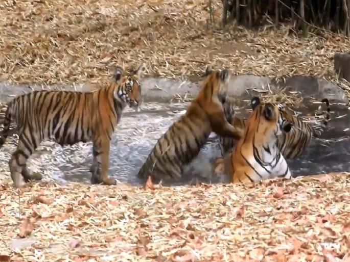 बबली व तिचे तीन पिल्ल पानवठ्यात आई सोबत मस्ती करीत आहेत. आई व पिल्लांची मस्ती एका पर्यटकांनी कॅमेराबद्ध केली आहे. ताडोबातील बबली व तिच्या पिल्लांचा व्हिडिओ हा सध्या समाज माध्यमावर चांगलाच सार्वत्रिक झाला आहे.