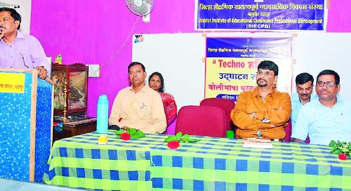शिक्षणाधिकारी (निरंतर) निलेश पाटील यांनी उद्घाटन केले. प्रमुख पाहुणे शिक्षणाधिकारी (माध्यमिक) संजय डोर्लीकर, प्रा. गंगाधर वाळले, जगन्नाथ कापसे, प्रल्हाद खुणे, संजयकुमार मेश्राम, आयटी विभाग प्रमुख विनोद लवांडटे, विवेक इत्तडवार, धनराज येलमुलवार आदी उपस्थित होते. प्राचार्य चापले म्हणाले, शिक्षण क्षेत्रात वेगाने बदल होत आहेत. या बदलांमध्ये स्पर्धाक्षम विद्यार्थी घडविण्याची मोठी जबाबदारी शिक्षकांवर आहे. त्यामुळे नव्या युगाशी संवाद साधणारी ज्ञानसंपदा व तंत्रज्ञानाचा स्वीकार केल्याशिवाय पर्याय नाही. यासाठीच हा उपक्रम सुरू केल्याचे त्यांनी सांगितले. शिक्षणाधिकारी (माध्यमिक) डोर्लीकर म्हणाले, आजच्या शिक्षण पद्धतीत केवळ पुस्तकांचा वापर करून उपयुक्त ठरणार नाही. संगणकाच्या माध्यमातून जगभरातील ज्ञान प्राप्त करण्यासाठी शिक्षकांनी आता अद्ययावत राहिले पाहिजे.