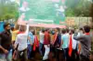 लोकमत न्यूज नेटवर्कचंद्रपूर : येथील प्रियदर्शिनी सभागृहाचा लोकार्पण सोहळा गुरुवारला होणार आहे. लोकार्पण सोहळ्याच्या निमंत्रण पत्रिकेवर भाजप विनित असा उल्लेख असल्याने चंद्रपूर शहरातील राजकीय वातावरण चांगलेच तापले आहे. बुधवारी अशा आशयाचे शहरभर लागलेले फलक युवा सेना व शिवसेनेच्या कार्यकर्त्यांनी हटविले.भाजपने जिल्हाभर भाजप विनित असलेल्या पत्रिका वाटल्या. बुधवारी चंद्रपूरात असेच फलक लावण्यात आले. सदर फलक तासाभरात आयुक्तांनी हटवावे, अन्यथा युवा सेना ते हटवेल, असा इशारा दिला. दीड तासानंतरही ते फलक कायम असल्याने युवासेना व शिवसेनेच्या कार्यकर्त्यांनी ते हटवून भाजपाची तानाशाही चालणार नाही, असे म्हणत निदर्शने केली. यावेळी जिल्हासेनेचे युवाप्रमुख संदीप गिऱ्हे, सोयल शेख, राहुल विरुटकर, मनीष जेठाणी, हिमायु अली, हर्षद कानमपल्लीवार, इलियास शेख, सुरज भोंगे, सुचित पिंपळशेंडे आदी उपस्थित होते.बांधकामाची चौकशी करा : काँग्रेसप्रियदर्शिनी इंदिरा गांधी सांस्कृतिक सभागृहाच्या नुतनीकरणाचे काम काम सार्वजनिक बांधकाम विभागाच्या माध्यमातून झाले आहे. यासाठी अडीच कोटींचा खर्च अपेक्षीत होता. परंतु, तो खर्च वाढत जावून साडेबारा कोटी रुपयांवर गेला, या बांधकामाची चौकशी करण्याची मागणी चंद्रपूर शहर जिल्हा काँग्रेस कमिटीचे महामंत्री देवेंद्र बेले यांनी सार्वजनिक बांधकाम मंत्री चंद्रकांत पाटील यांच्याकडे एका निवेदनातून केली आहे.