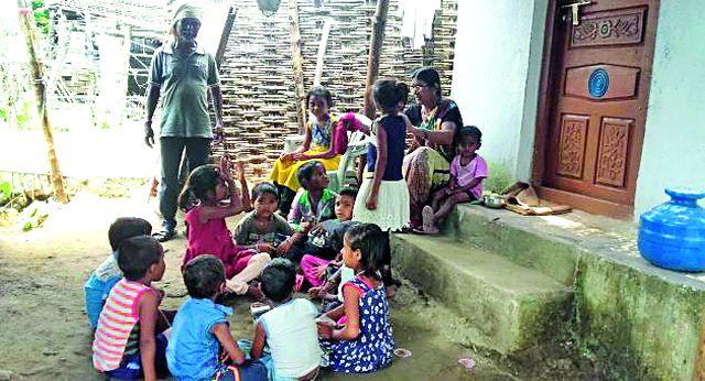 चिमुकल्यांची शाळा भरते वऱ्हांड्यात