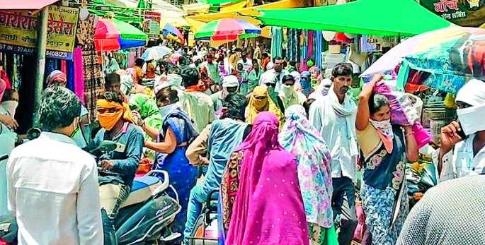 लोकमत न्यूज नेटवर्कचंद्रपूर : कोरोनाच्या पार्श्वभूमीवर प्रशासनाने लागू झालेले लॉकडाऊन काही अटी शिथिल करून उठविल्यानंतर चंद्रपूरसह जिल्ह्यातील सर्वच शहरांनी सोमवारी प्रचंड गर्दी अनुभवली. आतापर्यंत केवळ जीवनाश्यक वस्तुंपुरतेच गरजा भागविणाऱ्या नागरिकांनी विविध वस्तुंची खरेदीसाठी बाजारात आल्याने झुंबळ उडाली होती. शहरातील सर्वच रस्त्यांवर दुपारी २ वाजेपर्यंत वाहनांची वर्दळ दिसून आली.कोरोनाचा प्रादुर्भाव होऊ नये, यासाठी राज्य शासनाच्या आदेशानुसार जिल्हा प्रशासनाने २३ मार्च रोजी लॉकडाऊन लागू केले. त्यानंतर केंद्र शासनाच्या आदेशानुसार लॉकडाऊनमध्ये वाढ करण्यात आली. या कालावधीत भाजीपाला, किराणा, औषधी आदी जीवनावश्यक वस्तुंची दुकाने वगळून सर्व व्यावसायिक प्रतिष्ठाने बंद ठेवण्यात आली. दरम्यान, जिल्ह्यात कोरोनाचा एक आढळल्याने प्रशासनाने लॉकडाऊन आणखी कडक केले. रूग्ण आढळलेल्या परिसराला सील करून संचारावर निर्बंध घातले. तेव्हापासून १० मे पर्यंत एकही रूग्ण न आढळल्याने लॉकडाऊमध्ये शिथिलता आणण्याचा निर्णय प्रशासनाने घेतला. त्यानुसार वेळापत्रक जारी करून जीवनाश्यक वस्तुंची दुकाने सकाळी ७ ते दुपारी २ आणि अन्य सर्व दुकाने सकाळी १० ते दुपारी २ वाजतापर्यंत सुरू ठेवण्याची परवानी दिली. त्यामुळे सोमवारी शहरातील सर्व रस्ते गर्दीने फु लून गेले होते. खरेदीसाठी बाजारात झुंबड उडाल्याचे दिसून आले.व्यावसायिकांनी केली दुकानांची स्वच्छताजिल्हा प्रशासनाने लॉकडाऊन शिथिलतेची घोषणा केल्यानंतर मनपाच्या सूचनेनुसार चंद्रपूर शहरातील बहुतेक व्यावसायिकांनी रविवारी दुकाने सॅनिटाईझ केली. कोरोनाचा प्रादुर्भाव होऊ नये, याकरिता ग्राहकांना उभे राहण्यासाठी बांबू व दोरी लावून अंतर ठेवण्याची व्यवस्था केली.बांधकाम साहित्याच्या किंमती वधारल्याउन्हाळ्याचे दिवस असल्याने अनेकांनी घरांचे बांधकाम सुरू केले होते. मात्र, लॉकडाऊनमध्ये बांधकाम साहित्य विक्रीची हार्डवेअर दुकाने बंद झाली. त्यामुळे बांधकाम रखडले होते. दुकाने सुरू होताच सर्वाधिक गर्दी याच दुकानांमध्ये दिसून आली. दरातही मोठी वाढ झाली होती.गॅरेजसमोर नादुरूस्त वाहनांच्या रांगादीड महिन्यांपासून बिघडलेली वाहने घरीच अडगळीत पडून होती. लॉकडाऊन असल्याने घराबाहेर निघण्याचा प्रश्न नव्हता. मात्र, सोमवारी निर्बंध उठताच शेकडो नागरिकांनी दुरूस्तीसाठी गॅरेजसमोर वाहनांची रांग लावल्याचे पाहायला मिळाले.