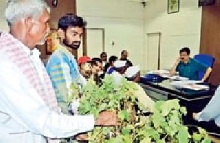 चंद्रपूर : जिल्ह्यातील कापूस पिकावर झालेल्या मर रोगामुळे शेतकऱ्यांचे संपूर्ण शेतातील पिके करपत आहेत. त्यामुळे शेतकरी आक्रमक झाले असून संभाजी ब्रिगेडनेही शेतकऱ्यांच्या प्रश्नांना घेऊन प्रशासनाला मदतीसाठी साकडे घातले आहे. शेतातील करपलेली झाडे घेऊन जिल्हाधिकारी कार्यालयावर संभाजी ब्रिगेडच्या पदाधिकाऱ्यांनी मंगळवारी धडक दिली. चंद्रपूर जिल्ह्यात वन्यप्राण्यांपासून पिकांचे नुकसान होत असताना त्यात कोरडा दुष्काळाची झळ शेतकऱ्यांना सोसावी लागत आहे. परंतु प्रशासन याकडे दुर्लक्ष करीत आहे. त्यासाठी वारंवार संभाजी ब्रिगेडने निवेदन देत असताना त्यावर दुर्लक्ष होत आहे. अवकाळी पावसामुळे कपाशी पिकावर मर रोग आल्याने संपूर्ण शेतीचे नुकसान होत आहे. यामुळे शेतकऱ्यांची दयनीय अवस्था झाली असून शासनाने यावर त्वरीत उपाय करुन शेतकऱ्यांच्या प्रश्नावर तोडगा काढावा, अन्यथा संभाजी ब्रिगेड रस्त्यावर उतरुण आंदोलन करेल, असा इशारा संभाजी ब्रिगेडचे जिल्हाध्यक्ष विनोद थेरे, तालुकाध्यक्ष दीपक खारकर, महानगर कार्याध्यक्ष विवेक बोरीकर यांनी दिला. जिल्हाधिकारी डॉ. दीपक म्हैसेकर आणि जिल्हा कृषी अधीक्षक निवेदन देताना संभाजी ब्रिगेडचे चंद्रकांत वैद्य, मंगेश चटकी, चंद्रशेखर झाडे, रुपेश सोनेकर, निमकर, महेश जेनेकर, शंकर भोगेकर, मारोती बरडे, दशरथ आत्राम, राहुल जेनेकर यांच्यासह शेकडो शेतकरी उपस्थित होते. (स्थानिक प्रतिनिधी)