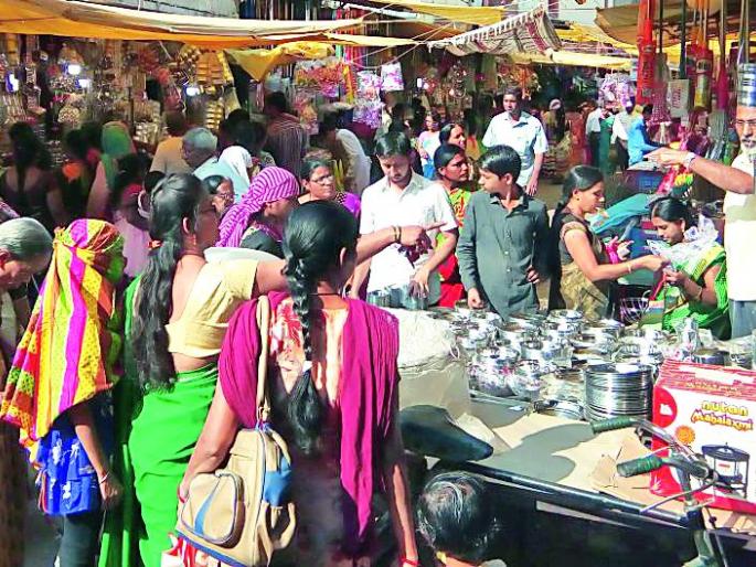 वाण खरेदीसाठी बाजारात उसळली गर्दी