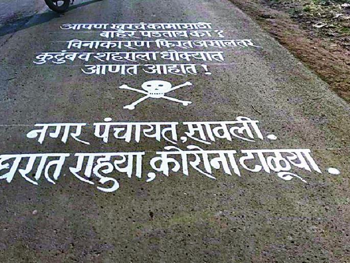 कोरोनाच्या जागृतीसाठी रस्त्यावर लिहिली घोषवाक्ये