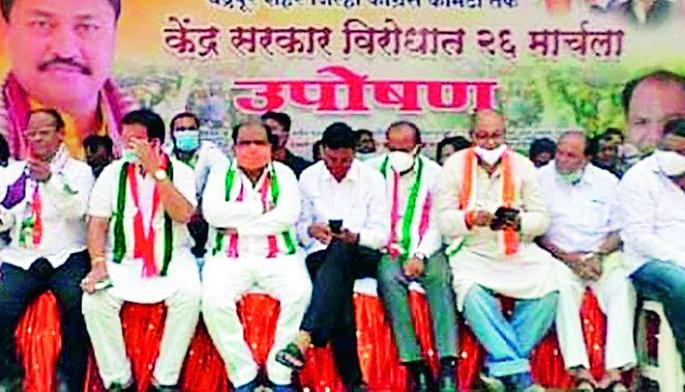 लोकमत न्यूज नेटवर्कचंद्रपूर : केंद्र सरकारच्या तयार केलेले तीन कृषी कायदे रद्द करावे या मागणीसाठी दिल्लीत आंदोलन करणाऱ्या शेतकऱ्यांनी शुक्रवारी भारतबंद पुकारला होता. या बंदच्या समर्थनार्थ जिल्हाभरात काँग्रेसतर्फे धरणे व उपोषण करण्यात आले. केंद्र सरकार शेतकरी विरोधी असल्याचा आरोप करून भाजप सरकार विरूद्ध नारेबाजी करण्यात आली. चंद्रपूर शहर जिल्हा काँग्रेस कमिटीच्या पुढाकारातून येथील गिरनार चौकात शुक्रवारी सकाळी ११ ते दुपारी ४ वाजेदरम्यान एकदिवसीय उपोषण करण्यात आले. यावेळी पालकमंत्री विजय वडेट्टीवार, खासदार बाळू धानोरकर, आमदार सुभाष धोटे, आमदार प्रतिभा धानोरकर, चंद्रपूर शहर जिल्हा काँग्रेस कमिटीचे अध्यक्ष रितेश उर्फ रामू तिवारी यांच्यासह काँग्रेसचे पदाधिकारी, कार्यकर्ते मोठ्या संख्येने सहभागी झाले होते.कृषी कायद्यांविरोधात शेतकऱ्यांनी मागील १०० दिवसांपासून आंदोलन सुरू केले आहे. आतापर्यंत ३०० हून अधिक शेतकरी शहीद झाले आहेत. केंद्र सरकारने आधी चर्चेचा देखावा केला. मात्र, आता या आंदोलनाकडे दुर्लक्ष केले आहे. या आंदोलनाला काँग्रेसने पाठिंबा दर्शविला आहे. काँग्रेस अध्यक्ष सोनिया गांधी यांच्या निर्देशानुसार देशभर अनेक आंदोलने करण्यात आली. खासदार राहुल गांधी यांनी पंजाब, हरियाणा या राज्यात ट्रॅक्टर रॅली काढून सहभाग दर्शविला आहे. काँग्रेसच्या पुढाकारातून सुमारे ६० लाख शेतकऱ्यांच्या स्वाक्षरीचे निवेदन राष्ट्रपतींना पाठवून कृषी विधेयके रद्द करण्याची मागणी करण्यात आल्याचे यावेळी उपस्थितांनी सांगितले. आंदोलनात ग्रामीणचे जिल्हाध्यक्ष प्रकाश देवतळे, कामगार नेते के. के. सिंग, विनोद दत्तात्रय, कृषी उत्पन्न बाजार समितीचे सभापती दिनेश चोखारे, महिला काँग्रेसचे ग्रामीण जिल्हाध्यक्ष चित्रा डांगे, शहर जिल्हाध्यक्ष सुनीता अग्रवाल, नम्रता ठेमस्कर, गोपाल अमृतकर, संतोष लहामगे, प्रशांत दानव, ललिता रेवल्लीवार, कुणाल चहारे, हरीश कोतावार, राजेश अडूर, रोशन पचारे, पवन आगदारी, सोहेल शेख, रुचित दवे व अन्य उपस्थित होते.