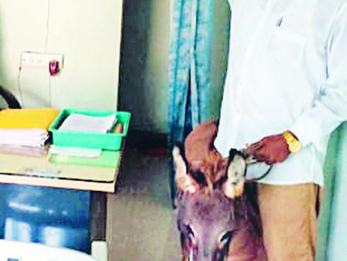 बांधकाम विभागाच्या कार्यालयात नेले गाढव