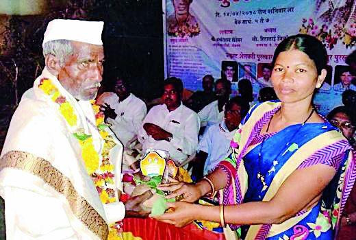 येथे स्व. किशोर इटनकर यांच्या स्मृतीप्रित्यर्थ भागरथाबाई इटनकर यांच्यातर्फे आयोजित कार्यक्रमात शेतकरी व शेतमजुरांचा सत्कार करण्यात आला.