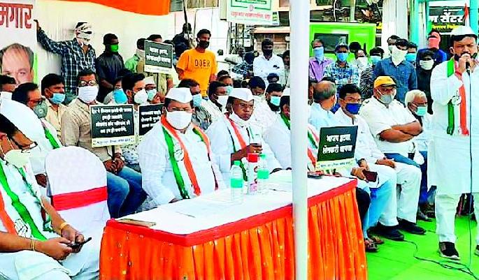 लोकमत न्यूज नेटवर्कचंद्र्रपूर : केंद्र सरकारने मंजूर केलेले विधेयक शेतकरी व कामगारांच्या मुळावर उठणारे असल्याचा आरोप करून काँग्रेसच्या वतीने शुक्रवारी महात्मा गांधी जयंतीदिनी चंद्रपूर, वरोरा, राजुरा, ब्रह्मपुरी, गोंडपिपरी येथे आंदोलनाद्वारे निषेध नोंदविण्यात आला. हाथरस येथील महिला अत्याचार व काँग्रेस पक्षाचे नेते खासदार राहुल गांधी व प्रियं, का गांधी यांना धक्काबुक्की केल्याच्या निषेधार्थ निदर्शने करण्यात आली. ब्रह्मपुरीत टायरची जाळपोळ करून निषेध नोंदविण्यात आला.चंद्रपूर शहर काँग्रेस कमिटी व जिल्हा ग्रामीण काँग्रेस कमिटीतर्फे गांधी चौकात धरणे आंदोलन करण्यात आले. यावेळी पालकमंत्री विजय वड्डेटीवार, खासदार बाळू धानोरकर, ग्रामीण जिल्हा काँग्रेस कमिटीचे निरीक्षक किशोर गजभिये, शहर काँग्रेस कमिटीचे अध्यक्ष रामू तिवारी, ग्रामीण काँग्रेस कमिटी अध्यक्ष प्रकाश देवतळे, विनोद दत्तात्रय, युसूफ भाई, के. के. सिंग, हारून भाई, मलक शाकीर, महाराष्ट अनुसूचित जाती उपाध्यक्ष अश्विनी खोब्रागडे, ओ. बी. सी जिल्हाध्यक्ष उमाकांत धांडे, महिला काँग्रेस शहर अध्यक्ष सुनीता अग्रवाल, किसान कॉंग्रेस अध्यक्ष रोशन पचारे, भालचंद्र दानव, नगरसेवक निलेश खोब्रागडे, नगरसेवक नंदू नागरकर, नगरसेविका सुनीता लोढिया आदी उपस्थित होते.कृषी विधेयके शेतकऱ्यांना मातीत घालणारीपालकमंत्री विजय वडेट्टीवार यांनी केंद्र सरकारच्या धोरणाच्या तीव्र शब्दात विरोध केला. काँग्रेसचे नेते खासदार राहुल गांधी यांना धक्काबुक्की करणे ही उत्तर प्रदेश सरकारची मुजोरीची आहे. कृषी विधयके देशातील शेतकऱ्यांना मातीत घालणारी असल्याने शेतकऱ्यांना याचा प्रखर विरोध करावा, असे आवाहन यावेळी केले. खासदार बाळू धानोरकर यांनी केंद्र सरकारच्या कृषी विधेयकाला विरोध करत मोदी सरकारने राज्यसभेत पारित न होणारे विधेयक सहा खासदारांना निलंबित करून डाव साधल्याचा आरोप यावेळी केला आहे.