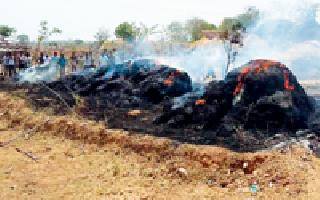 तणसाच्या ढिगाऱ्याला आग...
