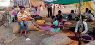 हाताला मिळाले काम : मिरचीचा ठसकाही झाला आता गोड घनश्याम नवघडे नागभीडमिरची भलेही नागभीड तालुक्यातील पीक नसेल पण याच मिरचीने या तालुक्यातील शेकडो हातांना रोजगार उपलब्ध करुन दिला आहे. नागभीड तालुक्यातील बाम्हणी, कानपा आणि मोहाळी येथे भेट दिली तर याची प्रचिती येते.नागभीड तालुक्याचे मुख्य आणि एकमेव पीक धान आहे. या एका पिकावर तालुक्याची अर्थव्यवस्थाही अवलंबून आहे. पण दरवर्षी निसर्गाच्या लहरीपणामुळे या तालुक्यातील धान शेती भकास होत चालली आहे. खर्च जास्त आणि उत्पन्न कमी या धोरणाने शेतकरीही हतबल झाले आहेत. उद्योगाच्या बाबतीतही नागभीड तालुका कोसो दूर मागे आहे. उद्योगाविरहीत तालुका अशीच नागभीडची ओळख आहे. त्यामुळे येथील तरुणांना आणि लोकांना बेकारीचेच जीवन जगावे लागत आहे. अशा परिस्थितीत नागभीड तालुक्यातील बाम्हणी, मोहाळी आणि कानपा येथे सुरु करण्यात आलेले मिरचीचे सातरे त्या परिसरातील मजुरांना दिलासा देणारे ठरले आहेत. गेल्या अनेक दिवसांपासून या ठिकाणी मिरचीचे सातरे सुरु असून शेकडो मजूर त्या ठिकाणी कामाला जावून रोजगार प्राप्त करुन घेत आहेत. अशा परिस्थितीत नागभीड तालुक्यातील बाम्हणी, मोहाळी आणि कानपा येथे सुरु करण्यात आलेले मिरचीचे सातरे त्या परिसरातील मजुरांना दिलासा देणारे ठरले आहेत. गेल्या अनेक दिवसांपासून या ठिकाणी मिरचीचे सातरे सुरु असून शेकडो मजुर त्या ठिकाणी कामाला जावून रोजगार प्राप्त करुन घेत आहेत. येथील सातरे पाहून अनेकांना समज होत आहे की, ही मिरची एक तर भिवापूर येथून किंवा नागपूर जिल्ह्यातून येत असावी. पण हा समाज पूर्णत: चुकीचा आहे. या सातऱ्यावर येणारी मिरची आंध्रप्रदेशातून मिरची ट्रकाद्वारे आणल्या जाते. तिथे मिरचीच्या मुक्या काढल्या जातात. त्यासाठी एका बोऱ्यावर मजुरांना ५०० रुपये मोबदला दिला जातो. एक जोडी दीड दिवसात एक बोरा मिरचीच्या मुक्या काढण्याचे काम करते. आता हे सातरे गावातच सुरु झाल्याने या मजुरांनी मुलांनाही या कामावर लावून घेतले आहे. त्यामुळे या मजुरांना दरडोई १५० ते २०० एका दिवसाचा मोबदला मिळतो. मिरची स्वच्छ झाली की देशविदेशात निर्यात होते. शासनाने मग्रारोहयोच्या माध्यमातून प्रत्येकाच्या हाताला काम देण्याचे कबुल केले असले तरी शासनाचे हे आश्वासन अभावानेच नागभीड तालुक्यात दिसून येतो. त्यामानाने या सातऱ्याच्या रुपाने मिळालेला रोजगार परिसरातील मजुरांना दिलासा देणारा आहे.आम्ही यापूर्वी दुसऱ्या गावातील सातऱ्यावर जाऊन काम करीत होतो. यात आमचा बराच वेळ जात होता. या वेळीची बचत व्हावी म्हणून कंत्राटदाराने आम्हाला आमच्या गावीच सातरा उपलब्ध करुन दिला, असे एका महिला मजुराने सांगितले.