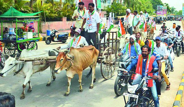 शासनाच्या धोरणाविरोधात शुक्रवारी सकाळी ११ वाजता चंद्रपूर येथे चंद्रपूर जिल्हा राष्ट्रवादी काँग्रेस पार्टीच्या वतीने जिल्हा परिषद समोरील जिल्हा मध्यवर्ती बँक पेट्रोल पंप पटांगणापासून ते जिल्हाधिकारी कार्यालयावर मोर्चा काढण्यात आला.