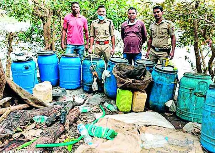 लोकमत न्यूज नेटवर्कवरोरा : येथून जवळच असलेल्या नागरी परिसरातील एका शेतात गावठी दारू काढत असल्याची माहिती वरोरा पोलिसांना मिळाली. त्यानुसार पोलिसांनी शनिवारी दोन ठिकाणी धाड टाकून तीन लाख रुपयांचा मुद्देमाल जप्त केला. याप्रकरणी आरोपींविरुद्ध गुन्हा दाखल करण्यात आला आहे.वरोरा पोलीस स्टेशनचे प्रभारी अधिकारी सतीश देशमुख यांना वरोरा पोलीस स्टेशन अंतर्गत येणाऱ्या नागरी शेतशिवारात हातभट्टीवर मोहाची दारु काढत असल्याची माहिती मिळाली. त्यांनी आपल्या सहकाऱ्यांसह शनिवारी धाड टाकली असता नदीच्या काठावर निळ्या रंगाचे प्लास्टिक ड्रममध्ये गावढी हातभट्टीची ९०० लिटर दारु सडवा जप्त केला. त्यानंतर नागरी येथील शंकर शिवरकर यांच्या शेतात दहा प्लास्टिक ड्रममध्ये एक हजार लिटर मोहफुलाचा सडवा जप्त करून शंकर शिवरकर (३८), विजय दिवाकर नैताम,(३५) दिनेश बोरकर (३२), दिगांबर आत्राम (४५) सर्व रा. नागरी यांच्याविरुध्द दारुबंदी कायद्यानुसार गुन्हा दाखल करून शोध सुरु केला आहे.