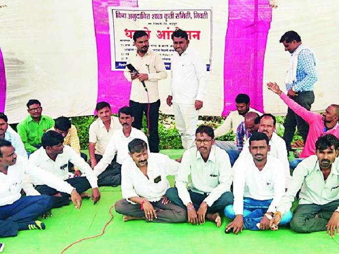 जिवतीत विनाअनुदानित शिक्षकांचे धरणे