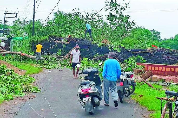 पिंपळाचे झाड कोसळल्याने विजेच्या तारा तुटल्या. विजेचा एक खांब कोसळला, तर एक खांब पूर्णत: वाकला. या ठिकाणी ११ केव्हीची लाईन आहे. नगर परिषदेतर्फे लावण्यात आलेल्या तीन खुर्च्यांवर सदर झाड कोसळले.