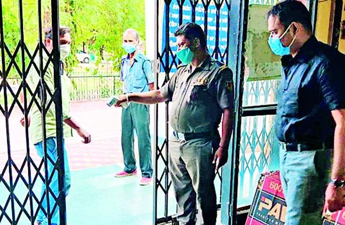 तापमान तपासूनच प्रवेशकार्यालयात जे व्यक्ती कामानिमित्त येतात. त्या प्रत्येकांचे तापमान तपासून त्यांची नोंद करुन प्रवेश दिला जातो. मास्क घालून नसल्यास त्याला प्रवेश नाही. कार्यालयात सॅनिटायझर ठेवण्यात आले आहेत. घोळका करुन बसण्यावर निर्बंध घालण्यात आले आहेत.