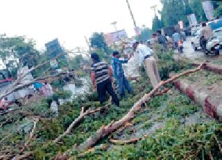 शेतकऱ्यांत आनंद : पेरणी कामांना येणार वेगचंद्रपूर : गेल्या काही दिवसांपासून शेतकऱ्यांना पावसाची प्रतीक्षा लागली होती. मृग नक्षत्राला सुरूवात होऊन तीन दिवसांचा कालावधी लोटत नाही तर बुधवारी जिल्ह्यात अनेक ठिकाणी पावसाने हजेरी लावली. त्यामुळे शेतकरी काही प्रमाणात सुखावला असून पेरणी कामांना आता वेग येणार आहे.रोहिणी नक्षत्र संपून मृग नक्षत्राला ८ जूनला सुरूवात झाली. यावर्षी चांगल्या पावसाचा अंदाज हवामान खात्याने वर्तविल्याने मृग नक्षत्रात पाऊस पडल्यास पेरणी करण्याचे अनेक शेतकऱ्यांनी नियोजन केले. बी-बियाणांची जुळवाजुळव, खताची खरेदी, मशागत पूर्व कामे यापूर्वीच पार पडली आणि पावसाच्या प्रतीक्षेत शेतकऱ्यांच्या नजरा आभाळाकडे लागल्या होत्या. गेल्या काही दिवसांपासून ढगाळ वातावरण आहे. मात्र पाऊस झाला नाही. त्यामुळे यावर्षीसुध्दा पाऊस लांबणीवर जाणार का, हवामान खात्याचा अंदाज खोटा ठरणार का, अशी शेतकऱ्यांत चर्चा होती. मात्र बुधवारी जिल्ह्यात पावसाने हजेरी लावल्याने शेतकऱ्यांनी काही प्रमाणात समाधान व्यक्त केले आहे. (स्थानिक प्रतिनिधी)घुग्घुस, सावली येथे वादळी पाऊसघुग्घुस व सावली येथेही सायंकाळी ४ वाजताच्या सुमारास जोरदार वादळी पावसाने हजेरी लावली. त्यामुळे अनेकांच्या घरांवरचे टिनाचे पत्रे उडाली. वादळामुळे वीज पुरवठा खंडीत झाल्याने येथील वीज पुरवठा पुर्णत: बंद झाला होता. नवरगाव येथे वादळाने अनेकांचे नुकसानबुधवारी सायंकाळी जोरदार वादळी वाऱ्यासह पाऊस झाल्याने नवरगाव येथील अनेक नागरिकांना फटका बसला. घरावरील टिनाचे पत्रे, कवेलू वादळामुळे उडाले. तर अनेक झाडेही उन्मळून पडली. त्यामुळे येथील वीज पुरवठा बंद झाला होता.वीज पडून दोन बैलांचा मृत्यूवीज पडून दोन बैलांचा मृत्यू झाल्याची घटना जिवती तालुक्यातील वणी खुर्द या गावात बुधवारी घडली. बुधवारी जिवती तालुक्यातही वादळी पावसाने हजेरी लावली.ंपावसाने मनपाची पोल खोलचंद्रपुरात बुधवारी सायंकाळी ५ वाजताच्या सुमारास जोरदार वादळी वाऱ्यासह पावसाने हजेरी लावली. त्यामुळे नागरिकांची चांगलीच तारांबळ उडाली. अचानक आलेल्या पावसाने मनपा प्रशासनाची पुन्हा एखादा पोल खोलली. मान्सूनपूर्व नाल्यांची साफसफाई केली जात असली तरी अनेक नाल्या कचऱ्याने तुंबल्या आहेत. त्यामुळे पावसाचे पाणी वाहून जाण्यास अडथळा निर्माण होऊन पाणी रस्त्यावरून वाहत होते. जयंत टॉकीज परिसरातील मुख्य मार्गावर पाणी साचल्याने वाहनधारकांना साचलेल्या पाण्यातून मार्ग काढावा लागला. तर अनेक ठिकाणी चिखल पसरला आहे.