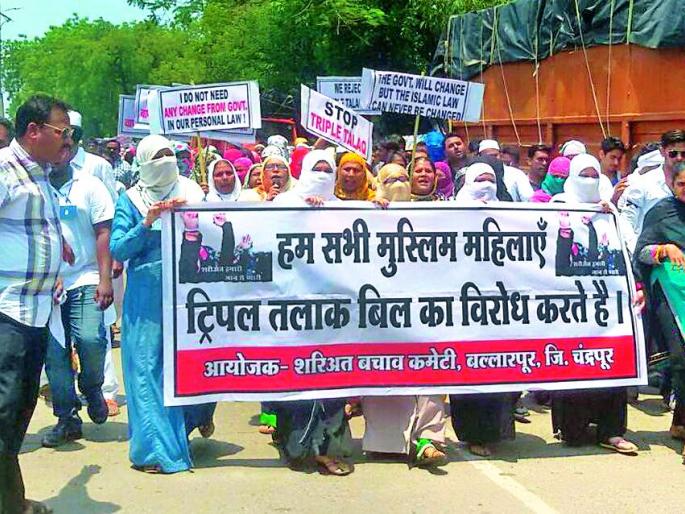 केंद्र सरकारच्या तीन तलाक बिलच्या विरोधात बल्लारपूर येथील मुस्लीम महिलांनी सोमवारी मोर्चा काढला. शरीअत बचाव कमिटी मार्फत निघालेला हा मोर्चा येथील मंगलमूर्ती लॉन वरून एसडीओ कार्यालयावर धडकला.