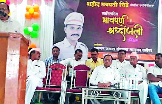 लोकमत न्यूज नेटवर्कवरोरा : दारुबंदीनंतरही जिल्ह्यात मोठ्या प्रमाणात अवैध दारुची विक्री सुरु आहे. मात्र अवैध दारुविक्रेत्यांवर कारवाई होत नसल्यामुळे नागभीड येथील पोलीस उपनिरिक्षक चिडे यांना जीव गमवावा लागला. त्यामुळे दारुबंदी रोखण्यासाठी कठोर अमंलबजावणीची गरज असल्याचे प्रतिपादन माजी मंत्री संजय देवतळे यांनी केले.धनगर समाज संघटनेच्या वतीने नागभीड येथील पोलीस उपनिरिक्षक चिडे यांना श्रद्धांजली अर्पण कार्यक्रम नुकताच पार पडला. यावेळी ते बोलत होते. याप्रसंगी व्यासपीठावर गुरुदेव सेवा मंडळाचे उपसर्वाधिकारी लक्ष्मण गमे, अॅड. मोरेश्वर टेमुर्डे, डॉ. विजय देवतळे, संजय बोधे, जिल्हा धनगर समाजाचे अध्यक्ष डॉ. मंगेश गुलवाडे, धनगर समाजाचे तालुका अध्यक्ष प्राचार्य गजानन शेळके, तहसीलदार बोडखे, डॉ. कपिल टोंगे, मनिष जेठाणी, बंडू डाखरे, अॅड. जयंत ठाकरे, प्रा. पिसे, रुपलाल कावळे, पडवे, राजेंद्र मर्दाने आदी उपस्थित होते.यावेळी मार्गदर्शन करताना डॉ. विजय देवतळे म्हणाले, जिल्ह्यातील तरुण वर्ग मोठ्या प्रमाणात अवैध व्यवसायाकडे वळला असून आता गुन्हेगारी नवीन रूप घेत आहे. यावर प्रतिबंध घालण्यासाठी सबधित विभागाने प्रयत्न करणे गरजेचे आहे. असे ते म्हणाले. तर अॅड. टेमुर्डे म्हणाले, सद्यास्थितीत कायद्याचा धाक उरलेला नाही. त्यामुळे स्त्रियावरील अत्याचारातसुद्धा वाढ झाली आहे. अवैध दारुविक्रीमध्येही मोठ्या प्रमाणात वाढ झाली आहे, असे ते म्हणाले.तर लक्ष्मण गमे म्हणाले, छत्रपती चिडे यांच्यावर गुन्हेगारांना पकडताना मरणाची वेळ येणे, ही अत्यंत दुर्देवी बाब असल्याचे सांगितले. तर गुरुदेव सेवा मंडळाचे कार्यकर्ते दारू तस्करांना रोखण्याचा यापुढे प्रयत्न करतील, असे आश्वासन दिले. कार्यक्रमाच्या सुरुवातीला प्राचार्य शेळके यांनी छत्रपती चिडे यांचा प्रेरणादायी प्रवास उलगडत त्याचे स्मारक बांधण्याची मागणी केली. कार्यक्रमाचे संचालन पंडीत लोंढे यांनी केले. यावेळी अनेकांची उपस्थित होते.