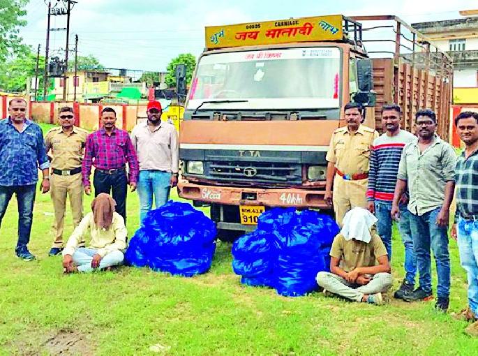 लोकमत न्यूज नेटवर्कचंद्रपूर : राज्य उत्पादन शुल्क विभागाच्या पथकाला मिळेलेल्या गुप्त माहितीच्या आधारावर राज्य उत्पादन शुल्क विभागाचे अधीक्षक सागर धोमकर यांच्या मार्गदर्शनाखाली सापळा रचून आइचर गाडीसह नऊ लाखांचा दारुसाठा जप्त करण्यात आला. ही कारवाई शुक्रवारच्या मध्यरात्री १ वाजताच्या दरम्यान जुनोना जंगल परिसरात करण्यात आली. या कारवाईत दोघांना अटक करण्यात आली. रवी मुर्तीराम आवळे रा. बल्लारपूर, शांतकुमार धनराज उपरे रा. बाबूपेठ चंद्रपूर असे अटकेतील आरोपीचे नाव आहे.जुनोना जंगल परिसरात आइचर वाहनाने दारूसाठ्याची वाहतूक होणार असल्याची माहिती राज्य उत्पादन शुल्क विभागाला मिळाली. त्या माहितीच्या आधारावर भरारी पथकाने जुनोना जंगल परिसराकडे सापळा रचला. सहा तास प्रतीक्षा केल्यानंतर रात्री १ वाजताच्या सुमारास सदर वाहन जुनोना जंगल परिसरात येताना दिसले. पोलिसांनी सदर वाहनास थांबण्याचा इशारा केला. मात्र वाहन न थांबविता जंगलात पसार झाले. पोलिसांनी सदर वाहनाचा पाठलाग करुन वाहन थांबवले. वाहनाजवळ जाऊन वाहनाची झडती घेतली असता वाहनात देशी दारूचे ५४ बॉक्स आढळून आले. यावेळी गाडीमध्ये बसून असलेले रवी आवळे, शांतकुमार उपरे यांना अटक केली. ही कारवाई राज्य उत्पादन शुल्क विभागाचे अधीक्षक सागर धोमकर यांच्या मार्गदर्शनाखाली विनोद भोयर, चंदन भगत, राहुल अत्रे, पुठ्ठलवार, चेतन अवचट, संदीप राठोड, अमोल भोयर यांनी केली.क्रांतीदिनी चिमुरात ९७ हजारांचा दारूसाठा जप्तचिमूर : देशात क्रांतिदिन साजरा होत असताना चिमूर पोलिसांनी आझाद वार्डातील एका घरी धाड टाकून ९७ हजार ८०० रुपयांची दारु जप्त केली. याप्रकरणी पती व पत्नीविरुद्ध गुन्हा दाखल केला असून पती नंदू मोहिणकार याला अटक केली आहे. ही कारवाई शुक्रवारी करण्यात आली. आझाद वार्ड येथे दारुची विक्री होत असल्याची माहिती गुप्त माहिती पोलिसांना मिळाली या माहितीच्या आधारावर पोलिसांनी मोहिणकार यांच्या घरी धाड टाकली. यावेळी ६१ हजार ८०० रुपये किंमतीच्या १८० एमएलच्या ६१८ नग देशी दारूच्या बॉटल, ३६ हजार रुपये किंमतीच्या १२० नग इंपिरियल ब्ल्यू व्हिस्कीच्या बॉटल असा ९७ हजार ८०० रुपयांचा मुद्देमाल जप्त करुन नंदू मोतीराम मोहिणकार याला अटक केली. ही कारवाई चिमूरचे पोलीस निरीक्षक स्वप्नील धुळे, नापोशी किशोर बोढे, पोशी सचिन गजभिये, विनायक सरकुंडे, कुणाल राठोड, मपोशी उज्वला परचके, विजय उपरे यांनी केली.