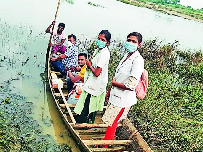 पी. एच. गोरंतवारलोकमत न्यूज नेटवर्कपोंभूर्णा : तालुक्याचे शेवटचे टोक असलेले गंगापूर व गंगापूर टोक ही दोन गावे दोन नद्यांच्या मधात वसलेली आहे. प्राथमिक आरोग्य केंद्र नवेगाव मोरेअंतर्गत या गावांमध्ये ये-जा करण्यासाठी फक्त डोंग्याचा वापर करावा लागतो. पावसाळ्यात दुथडी भरून वाहत जाणारी नदी प्रचंड रौद्ररूप धारण करून असते. असे असताना आरोग्य विभागाने जीव धोक्यात घालून डोंग्याने नदी ओलांडत या गावातील नागरिकांचे १०० टक्के कोविड लसीकरण केले. पोंभुर्णा तालुका आरोग्य अधिकारी डॉ. संदेश मामीडवार यांनी गंगापूर गावात १०० लसीकरणाची मोहीम हाती घेतली. आरोग्य यंत्रणेतील कर्मचाऱ्यांना सोबत घेऊन चेक ठाणेवासना येथून साध्या डोंग्याचा वापर करून गंगापूर गावात दाखल झाले. गावात आशा वर्कर व सामाजिक कार्यकर्त्यांना सोबत घेऊन ३० ऑगस्टला कोव्हिशिल्ड लसीकरण सत्र आयोजित केले. गंगापूरची लोकसंख्या ३४० च्या आसपास आहे. पात्र १३६ नागरिकांनी स्वयंस्फूर्तीने लस घेतल्याने शंभर टक्के लसीकरण केले. लसीकरणासाठी तालुका आरोग्य अधिकारी डॉ. संदेश मामीडवार, तालुका सुपरवायझर सूरज डुकरे, आरोग्य सहायक गजानन मेश्राम, आरोग्य सेवक सत्यनारायण सकनेरपवार, आरोग्य सेविका आयशा मडावी, आरोग्य सेविका प्रियंका वाघमारे, आशा वर्कर पुष्पा डायले, वाहन चालक पराग चांदेकर, वाहनचालक पवन कोवे, चिंटू कावलवार यांनी परिश्रम घेतले.